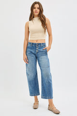 SLOUCHY CROP BARREL TWISTED SEAMS BUTTON FLY JEANS