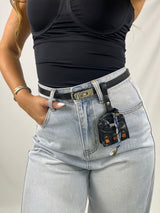 Introducing the Harper denim jeans, crafted with a wide cut and light wash for a trendy look. Features a removable belt mini purse for added convenience. Elevate your wardrobe with these stylish jeans.
