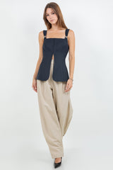 These soft woven pleated trousers feature a tapered leg opening for a flattering fit. With a 29-inch inseam, they offer a comfortable length perfect for various styles. Their pleated design adds subtle sophistication, making them ideal for both casual and professional settings. Designed to complement your silhouette, these trousers bring effortless elegance to your wardrobe.