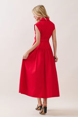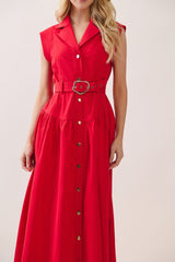 Elevate your everyday wardrobe with the Belinda Midi Dress, a timeless piece that effortlessly transitions from day to night. Crafted from a breathable cotton-polyester blend, this woven dress features classic cap sleeves and a flattering button-down front that lets you customize your look. The attached self belt cinches at the waist for a polished silhouette, while the midi length offers sophisticated coverage. Perfect for work, weekend outings, or casual gatherings, this versatile dress combines comfort with understated elegance.
