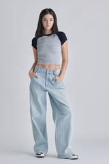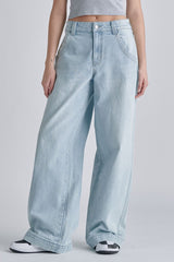Keep things cool and casual in the new Mid Waisted Ombre Y2K Skater Jean from Cello. These ultra-cool mid to low-rise jeans come in a classic medium wash and feature a longer stacked inseam that is baggy throughout the leg for an extra comfy fit.