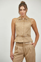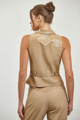Contrast Leather Panel Woven Vest Top