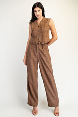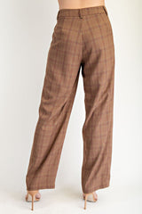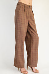 These plaid wide leg tailored pants bring a refined yet effortless feel to any wardrobe. Designed with a structured waistband and front pleats, they offer a clean and elongated silhouette while allowing comfortable ease through the leg. The plaid pattern adds a polished, timeless character, making them ideal for workwear, day outings, or elevated everyday looks. A zip-front closure maintains a smooth finish, while belt loops offer the option for additional styling versatility. The wide leg cut brings relaxed movement without losing the tailored edge, creating a balance of sophistication and comfort.