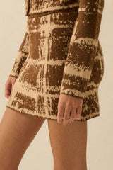 Elevate your wardrobe with this sophisticated jacquard-knit skort that seamlessly blends style and practicality. The layered design features an eye-catching patterned knit skirt paired with supportive solid knit shorts underneath, giving you the freedom to move confidently all day long. A fitted silhouette flatters your frame while the thigh-length cut offers modern versatility. Ribbed knit detailing at the waistband and shorts hem ensures a secure, comfortable fit that moves with you. Perfect for transitioning from casual outings to elevated occasions.