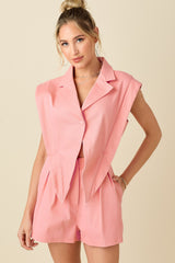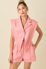 Elevate your wardrobe with this versatile denim romper that seamlessly transitions from day to night. Featuring a tailored blazer-style top connected to fitted shorts, this piece combines structure with comfort. The back elastic and quality stretch fabric ensure a flattering fit, while the zipper fly adds modern edge. Washed for that effortless, lived-in look, this trending style works dressed up with heels for evening events or paired with sneakers for casual outings. One garment, endless possibilities.