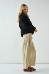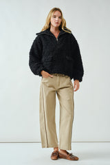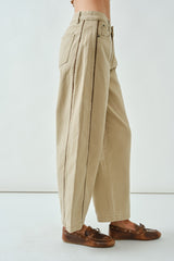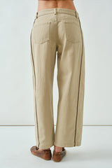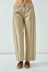 Upgrade your collection with these relaxed barrel pants, crafted from soft color denim for all-day comfort. Featuring contrast seam line detailing that elongates the silhouette, a high-rise fit, and roomy straight legs for effortless movement. Perfect for pairing with sweaters, tees, or outerwear for an easy yet stylish outfit.