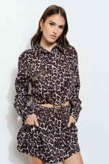 Make a statement with this striking leopard print zip-detail cropped jacket. The bold animal print commands attention while the modern cropped silhouette and adjustable drawstring hem create a flattering, contemporary fit. Edgy front zipper accents and flap details elevate your everyday style, while relaxed long sleeves ensure all-day comfort. Versatile enough to wear as a coordinated set or layer over your favorite pieces, this jacket transitions effortlessly from weekend adventures to casual evening plans. Elevate your wardrobe with a piece that combines fashion-forward design with wearable comfort.