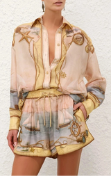 Experience effortless style and comfort with the Sienna Set Shorts in Yellow Nautical Map from our Summer Swim 2025 Collection. Crafted from luxurious 100% silk habutae, these shorts feature a drawstring waist with toggle ends for a perfect fit. Contrast piping along the waistband and hem adds a refined touch, while functional side pockets enhance practicality. Ideal for warm days, these relaxed shorts combine elegance and ease for your summer wardrobe.