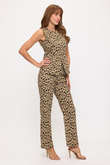 Make a bold statement with this striking leopard print twill vest and pants set. The eye-catching animal pattern brings instant edge to any wardrobe, while the self button closure adds refined detail. Crafted from durable twill fabric, this coordinated duo transitions seamlessly from casual outings to weekend adventures. Layer the vest over your favorite basics or wear the pants solo for versatile styling options. Perfect for fashion-forward individuals ready to embrace their wild side with confidence and flair.