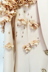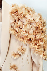 Elevate your style with The Trend Oven Set. This peach blazer set features delicate 3d flowers and stunning beads for a touch of elegance. Make a statement and stand out in any occasion. Upgrade your wardrobe and embrace the trend.