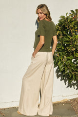 Effortlessly chic and comfortable, our Cotton Linen Wide Leg Pants are a must-have for any wardrobe. Made with a blend of soft cotton and breathable linen, they feature in-seam side pockets, a convenient elastic back band, and a trendy zip fly and button closure. Available in multiple colors and sizes, these pants provide both style and functionality.