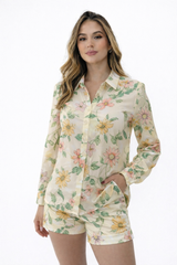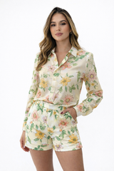 Elevate your everyday wardrobe with the Khloe Floral Blouse, a timeless piece that effortlessly transitions from office to weekend. This long-sleeve button-down features a stunning flower print that adds personality and charm to any outfit. The classic silhouette flatters all body types while the quality fabric ensures comfort throughout your day. Perfect for layering or wearing solo, this versatile blouse pairs beautifully with jeans, trousers, or skirts. Make a subtle style statement with a piece that works as hard as you do.