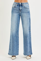 High Rise Wide Jeans With Contrast Side Wash Elevate your denim game with these statement-making high rise wide jeans that combine timeless style with modern edge. The striking contrast side wash creates visual interest and dimension, making these jeans a versatile wardrobe essential that works equally well dressed up or down. The high rise cut flatters your silhouette while the wide leg offers comfortable, confident movement throughout your day. Perfect for anyone seeking that effortless, fashion-forward look that never goes out of style.