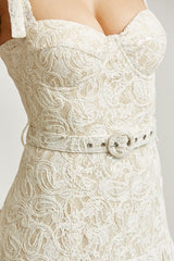 Elevate your wardrobe with this stunning dress that seamlessly blends elegance and comfort. Crafted from intricate lace fabric, it features supportive underwire bra cups and tie shoulder straps for a flattering silhouette. The drop waist design flows into a shirred skirt that moves beautifully with you, while the adjustable belt with functional loops lets you customize your fit throughout the day. A secure zipper back closure and full lining ensure durability and confidence with every wear. Perfect for special occasions or elevated everyday moments.