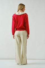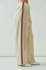 Elevate your everyday style with the Marie Striped Jogger Pants—where comfort meets contemporary edge. These relaxed wide-leg cotton pants feature a contrast waistband with adjustable drawstrings that let you dial in your ideal fit. Bold red double side tape details inject street-style flair, while the versatile silhouette pairs effortlessly with sneakers, sandals, or your favorite kicks. Perfect for those who refuse to compromise between comfort and looking effortlessly put-together.